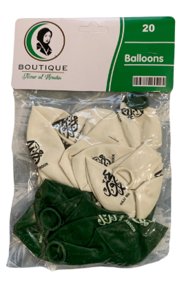 Hajj Mabroor Balloons (Green and White) (20 Pack)