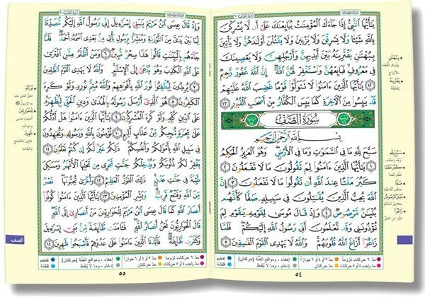 1- Colour coded letters: to present the Tajweed rules, very good and simple way to learn and apply Tajweed rules .