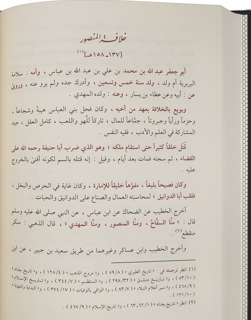 هذا كتاب في تاريخ الخلفاء، أمراء المؤمنين القائمين بأمر الأمة من عهد سيدنا أبي بكر الصديق رضي الله عنه إلى عهد المؤلف رحمه الله، على ترتيب زمانهم: الأول فالأول