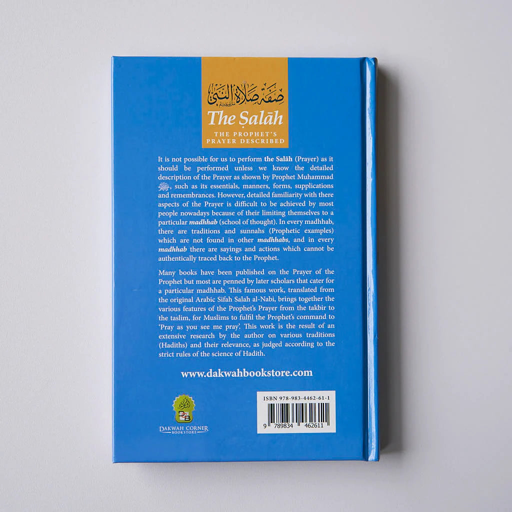 It is not possible for us to perform the Salah (Prayer) as it should be performed unless we know the detailed description of the Prayers as shown by Prophet Muhammad (SAW), such as its essentials, manners, forms, supplications, and remembrances. However, detailed familiarity with these aspects of the Prayer is difficult to be achieved by most people nowadays because of their limiting themselves to a particular madhhab (school of thought). In every madhhab, there are traditions and sunnahs (Prophetic examples which are not found in other madhhabs and in every madhhab there are sayings and actions which cannot be authentically traced back to the Many books have been published on the Salah (Prayer) of the Prophet but most are by later scholars that cater for a particular madhhab (school of thought). This famous work translated from the original Arabic Sifah Salah al-Nabi, brings to together as many features of the Prophet's Prayer from the beginning to the end, so that Muslims can fulfill the Prophet's command to "pray as you see me pray". This work is the result of an extensive research by the author on various traditions (hadiths) and their relevance, judged according to the strict rules of the science of Hadith.